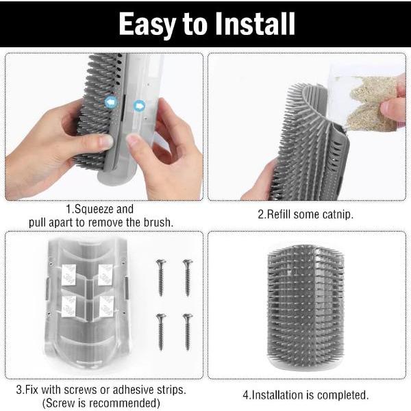 I gatti potrebbero aver bisogno di un po’ di tempo per adattarsi a queste spazzole angolari per gatti; è possibile aumentare il loro interesse aggiungendo un pizzico di erba gatta (non inclusa).