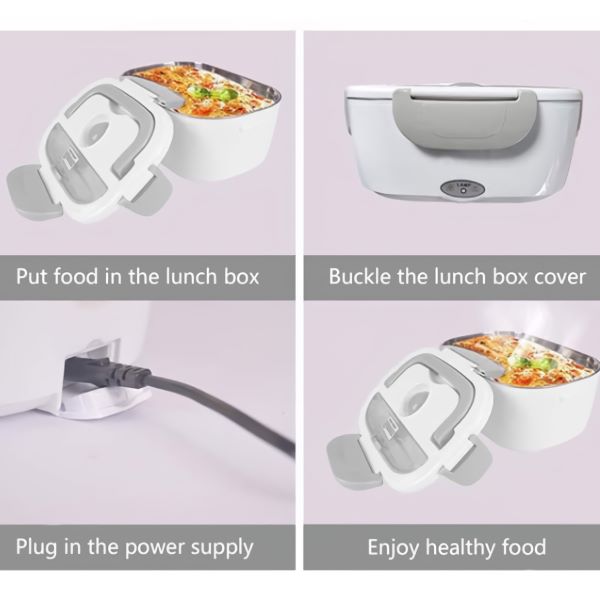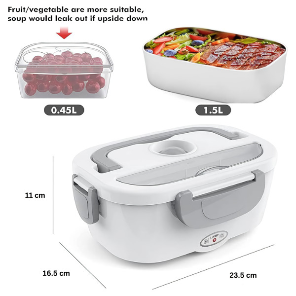 I 2 scomparti in PP rimovibili mantengono separati il piatto principale e il contorno, ed entrambi vanno dritti in lavastoviglie dopo l’uso. Funziona in ufficio, in auto, in un cantiere o in qualsiasi stanza con una presa di corrente.