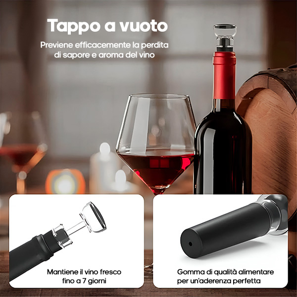 🍷 Il tappo sottovuoto mantiene il sapore per giorni