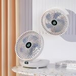 Questo ventilatore ricaricabile è dotato di una batteria di grande capacità da 5V/2A che richiede solo 3-4 ore per essere completamente caricata e può funzionare per 4-12 ore a seconda dell’impostazione della velocità del vento.