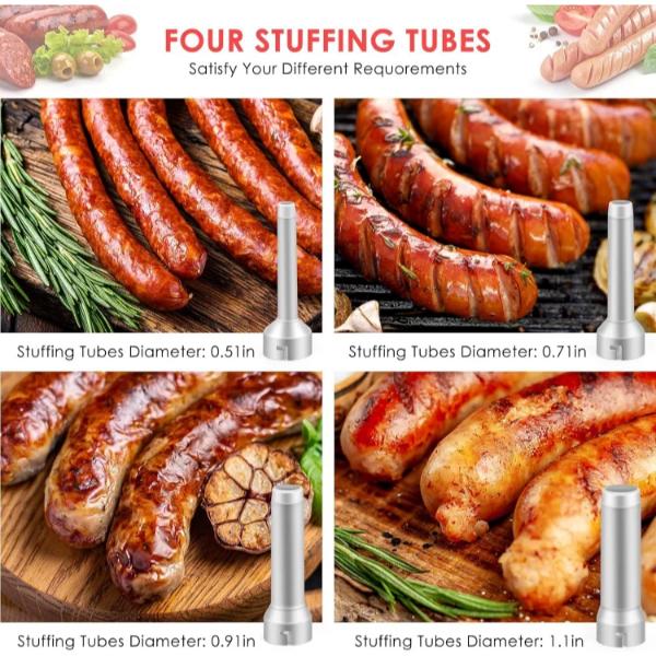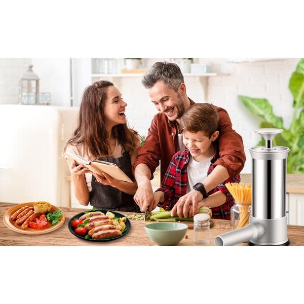 Dotato di 4 tubi in PP e 2 spazzole, questo insaccatore è perfetto per le feste e le riunioni di famiglia.