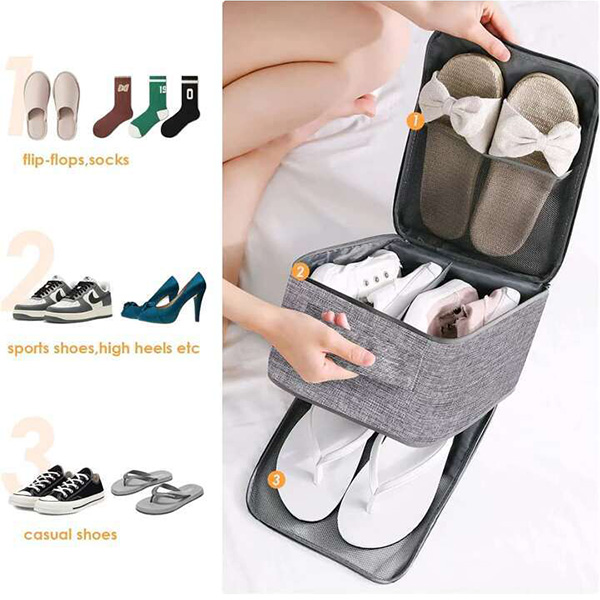 Mantenete le vostre scarpe organizzate durante i viaggi. Grazie al design multistrato, potrete riporre le vostre scarpe singolarmente, con ogni paio nel suo scomparto dedicato.