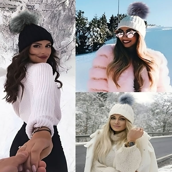 Cappello caldo in maglia con pom-pom | GLACIA